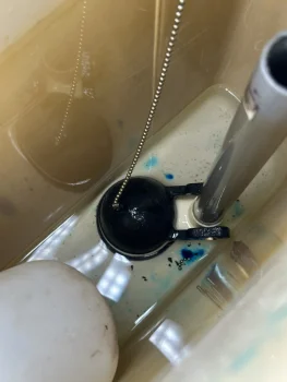 トイレタンク内のボールタップからの水漏れは少量の場合、気づきにくいです。