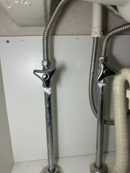 洗面台下の止水栓を閉め、ケレップ又は、バルブカートリッジの交換を行います。
