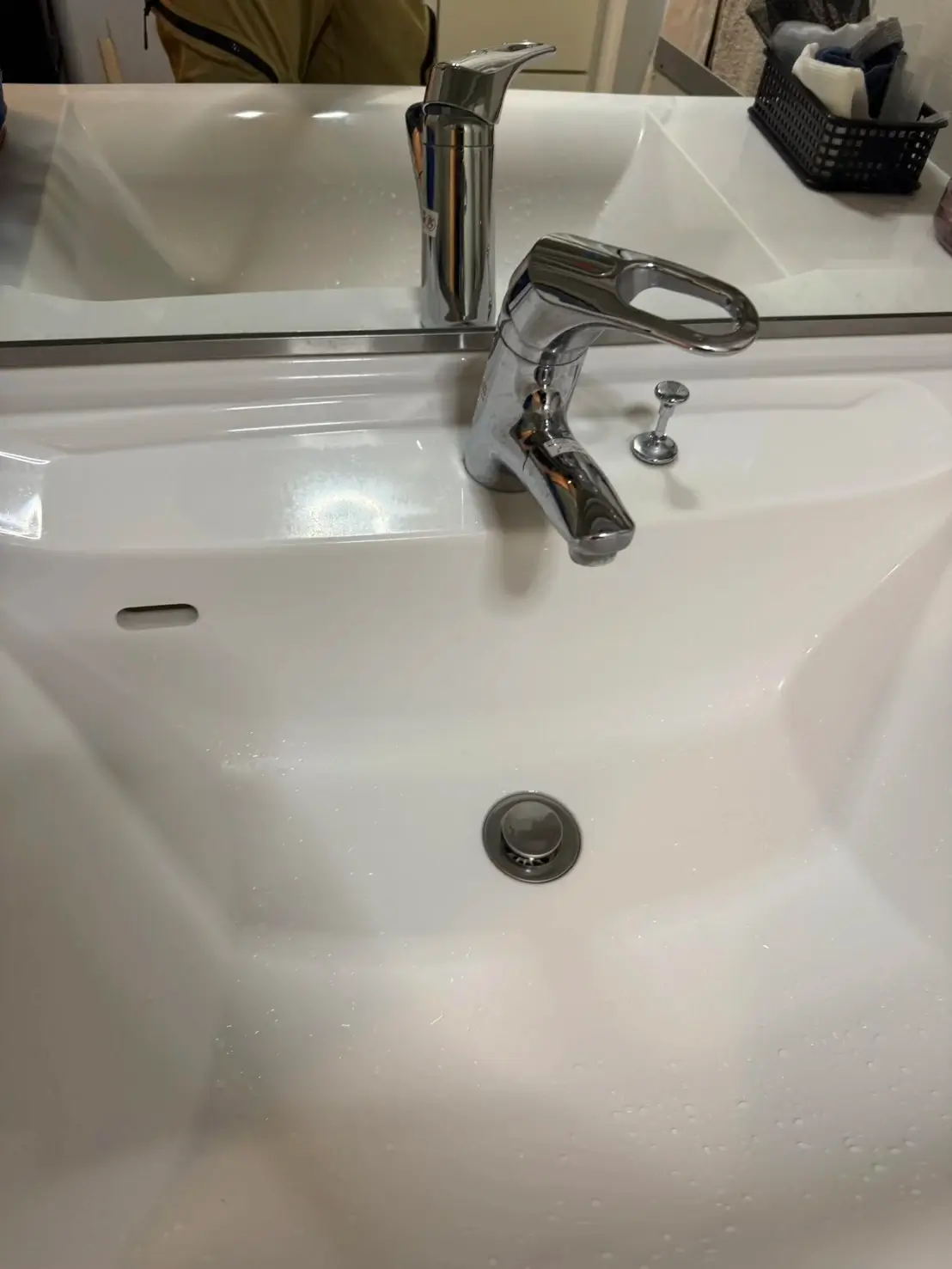 施工時には周囲の洗面台をしっかり養生し、水漏れ確認や動作テストも丁寧に行っています。
