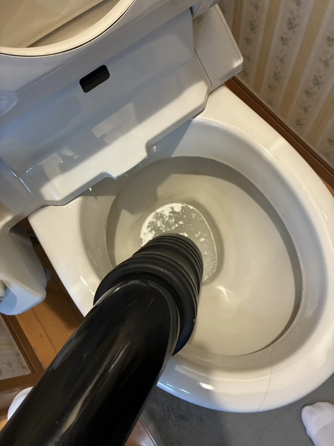今回は流した直後に水位が上昇する状態でしたので、排水内部での軽度な詰まりが考えられました。
