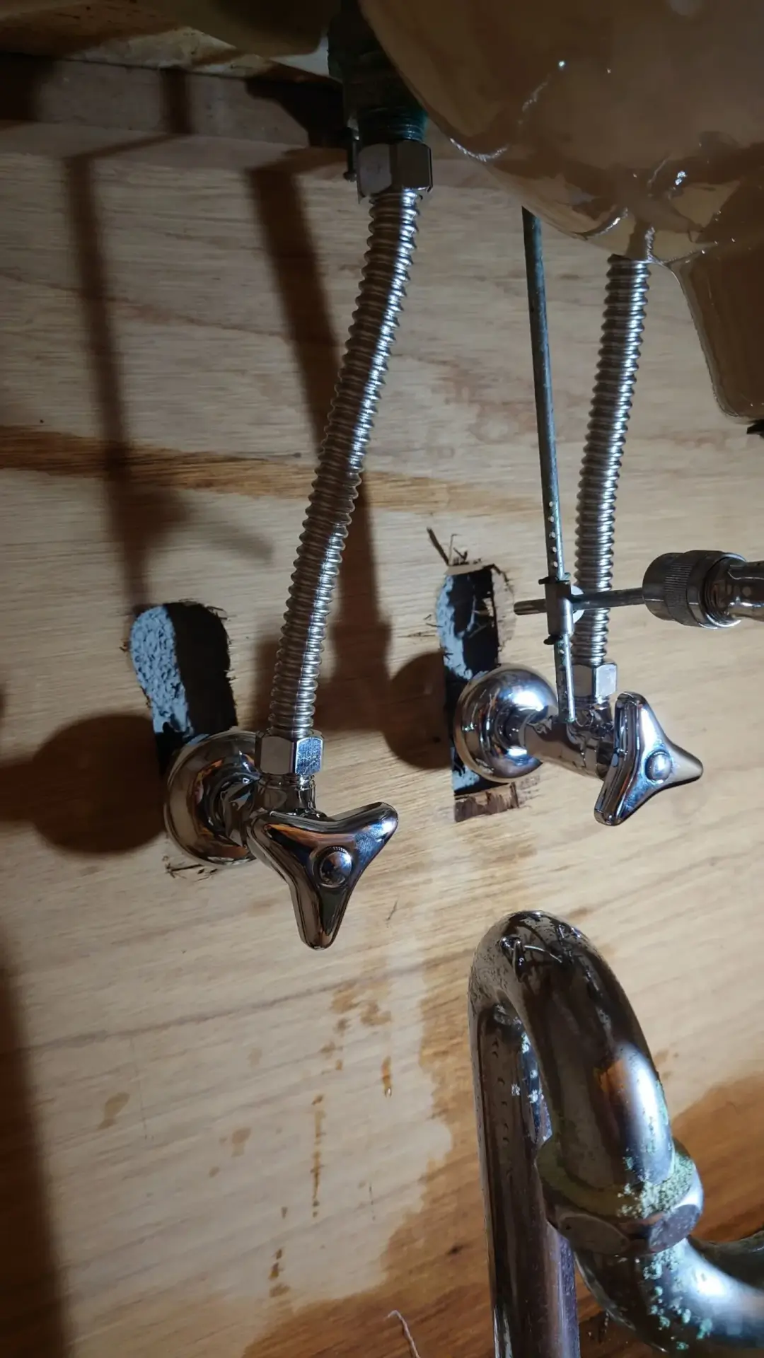 お客様とご相談のうえ、新しい止水栓2つを交換し、水漏れが完全に止まっていることを確認いたしました。