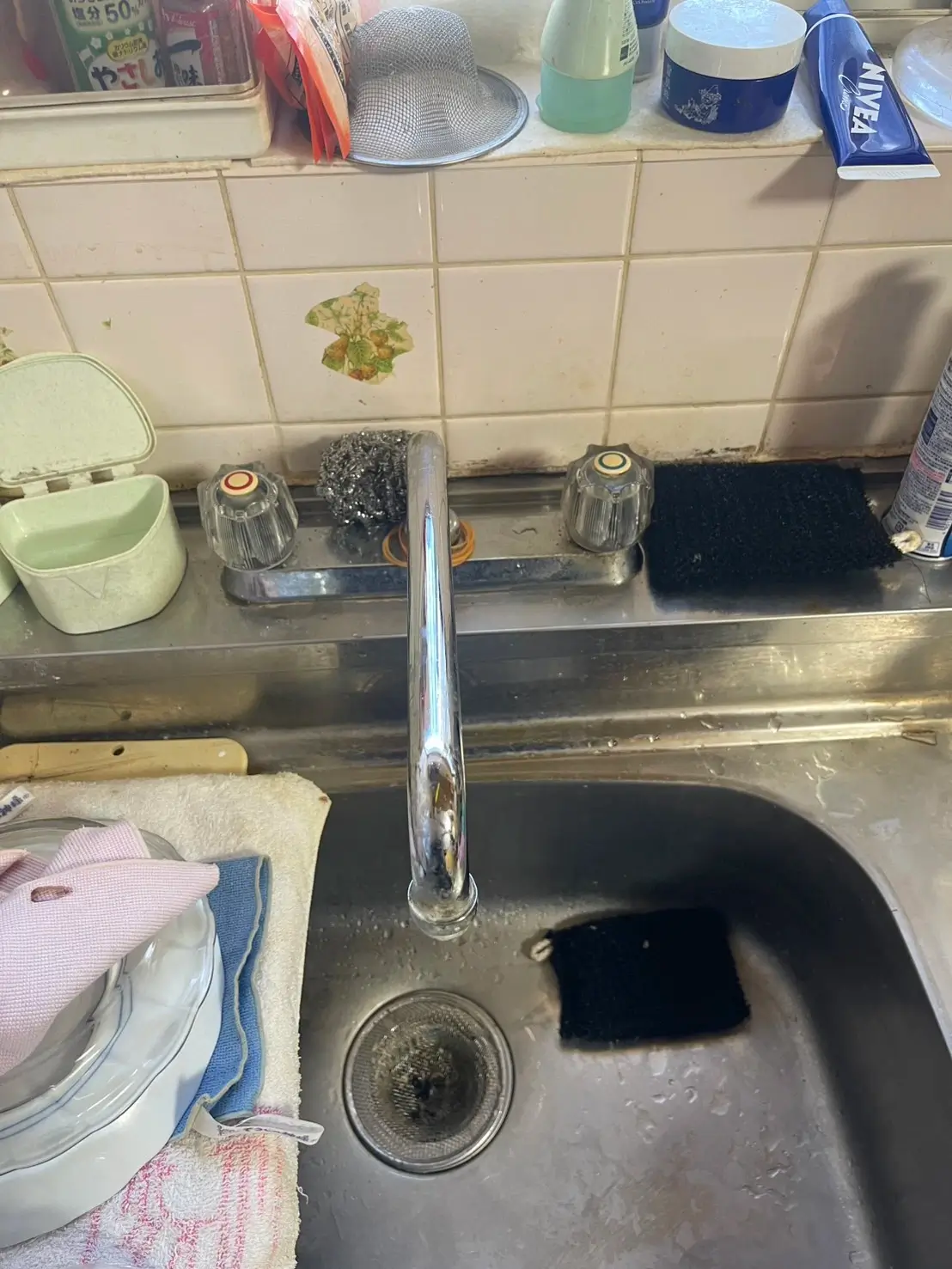 早朝に台所の蛇口から見たことのない場所から水が出始めて、どうしても止まらず本当に焦りました。