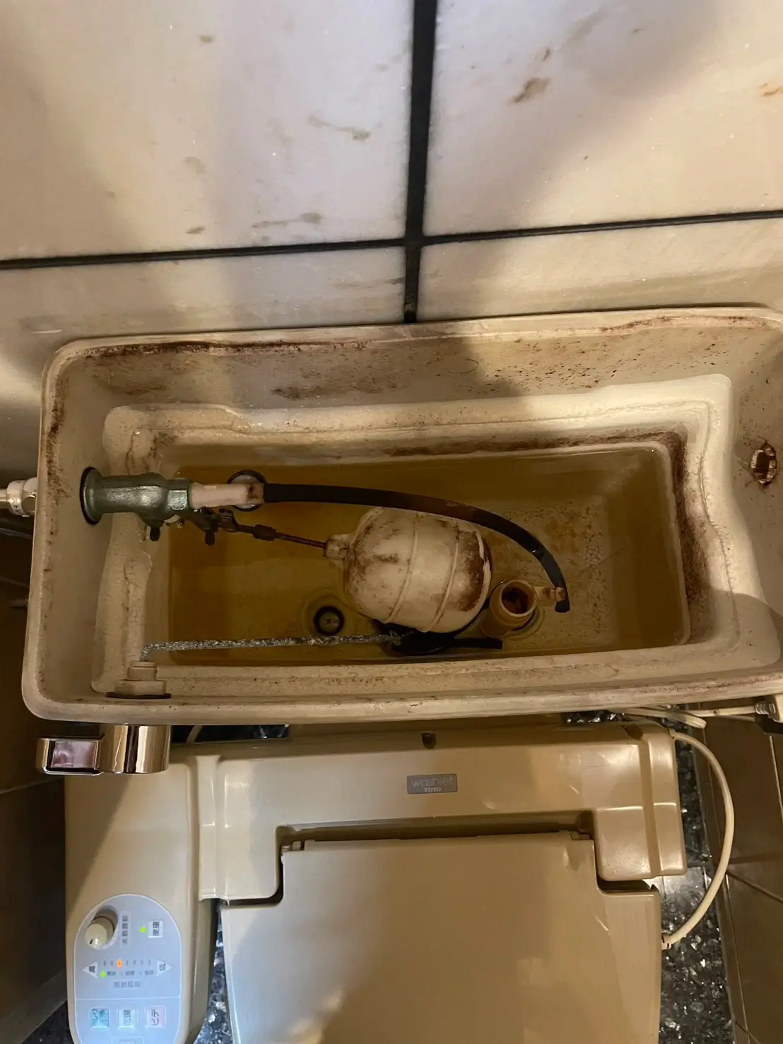 確認したところ、給水に関わる内部部品に汚れや付着物が溜まり、水の流入量が制限されている状態でした。