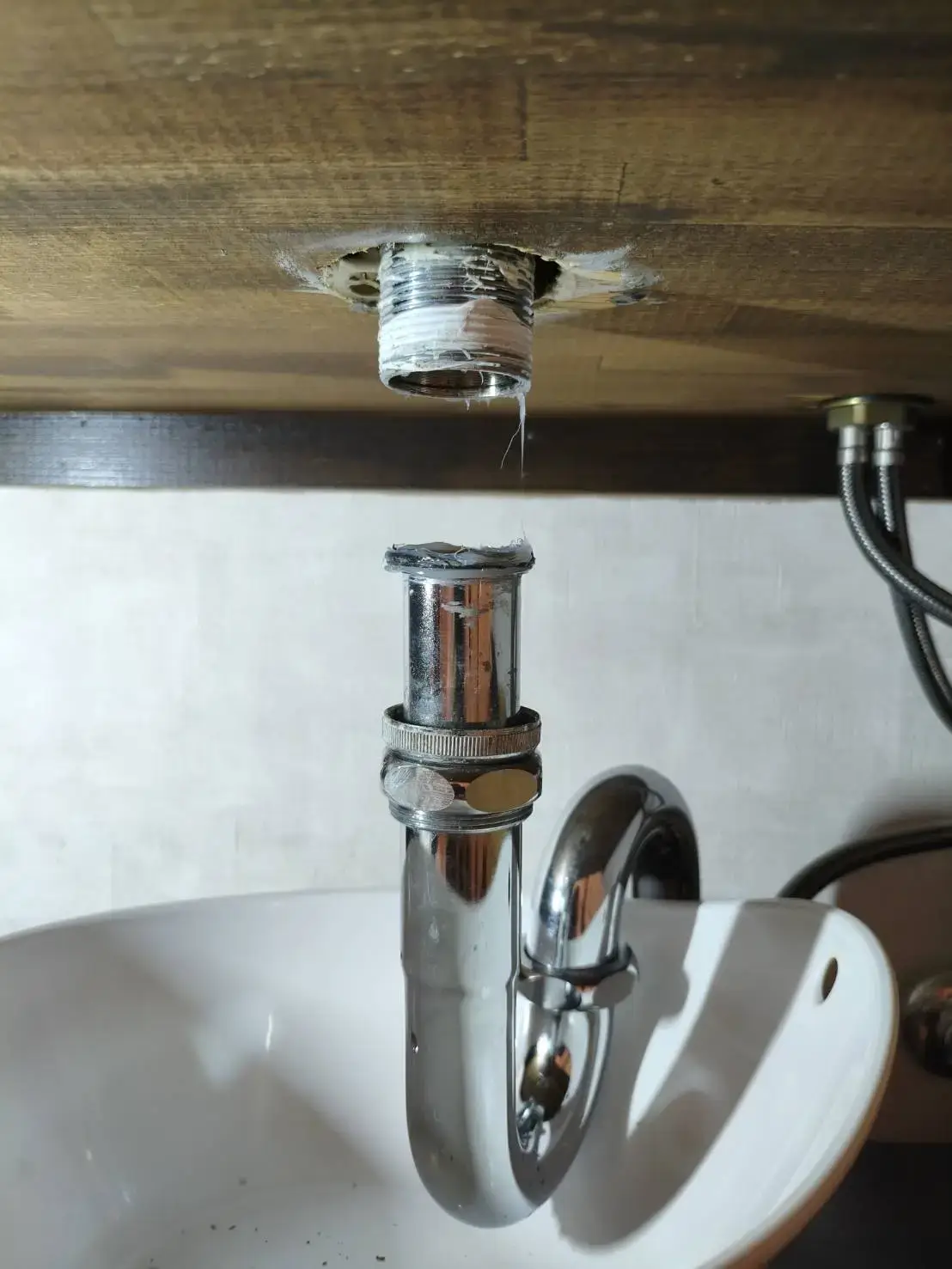 よく見ると排水パイプのつなぎ目からポタポタと水が漏れていて、タオルを敷いても止まらず困ってしまいました。