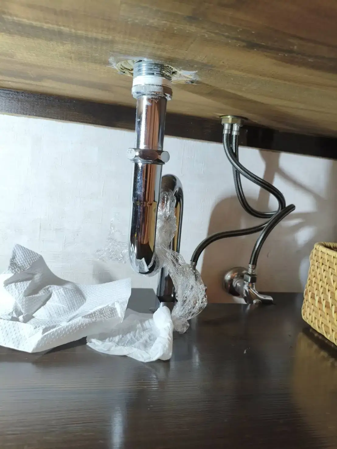 洗面所の下の収納を開けたら、中がびしょびしょに濡れていて驚きました。