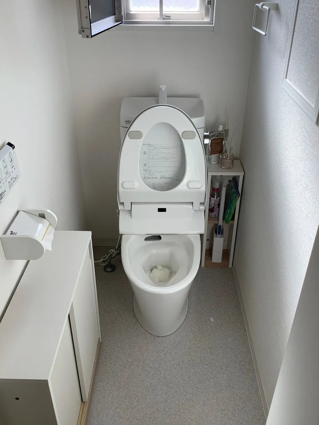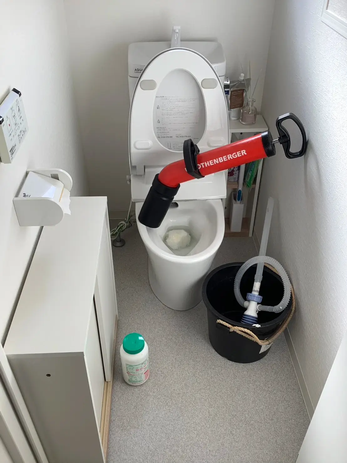 まずは状況を確認し、便器や配管を傷めないよう専用薬品で詰まりを分解し、その後ローポンプを使用して圧力をかけながら慎重に除去いたしました。