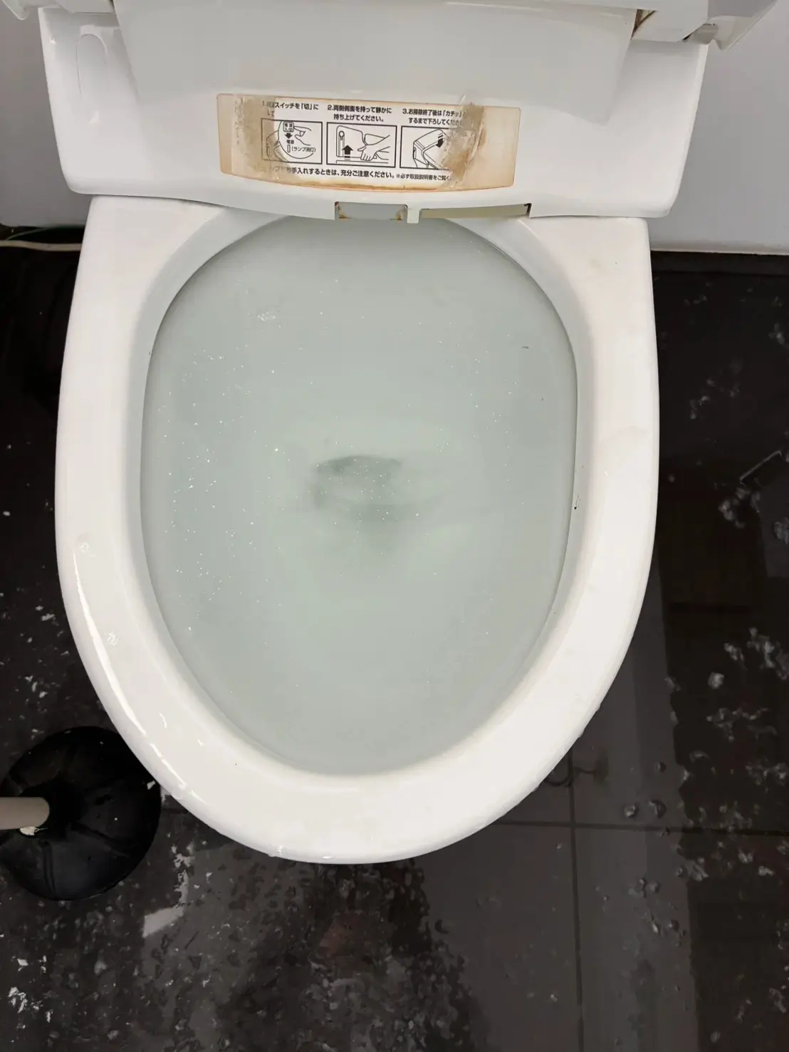 お伺いした際、便器内の排水が滞留しており、トイレットペーパーの固着が原因で詰まりを起こしていました。