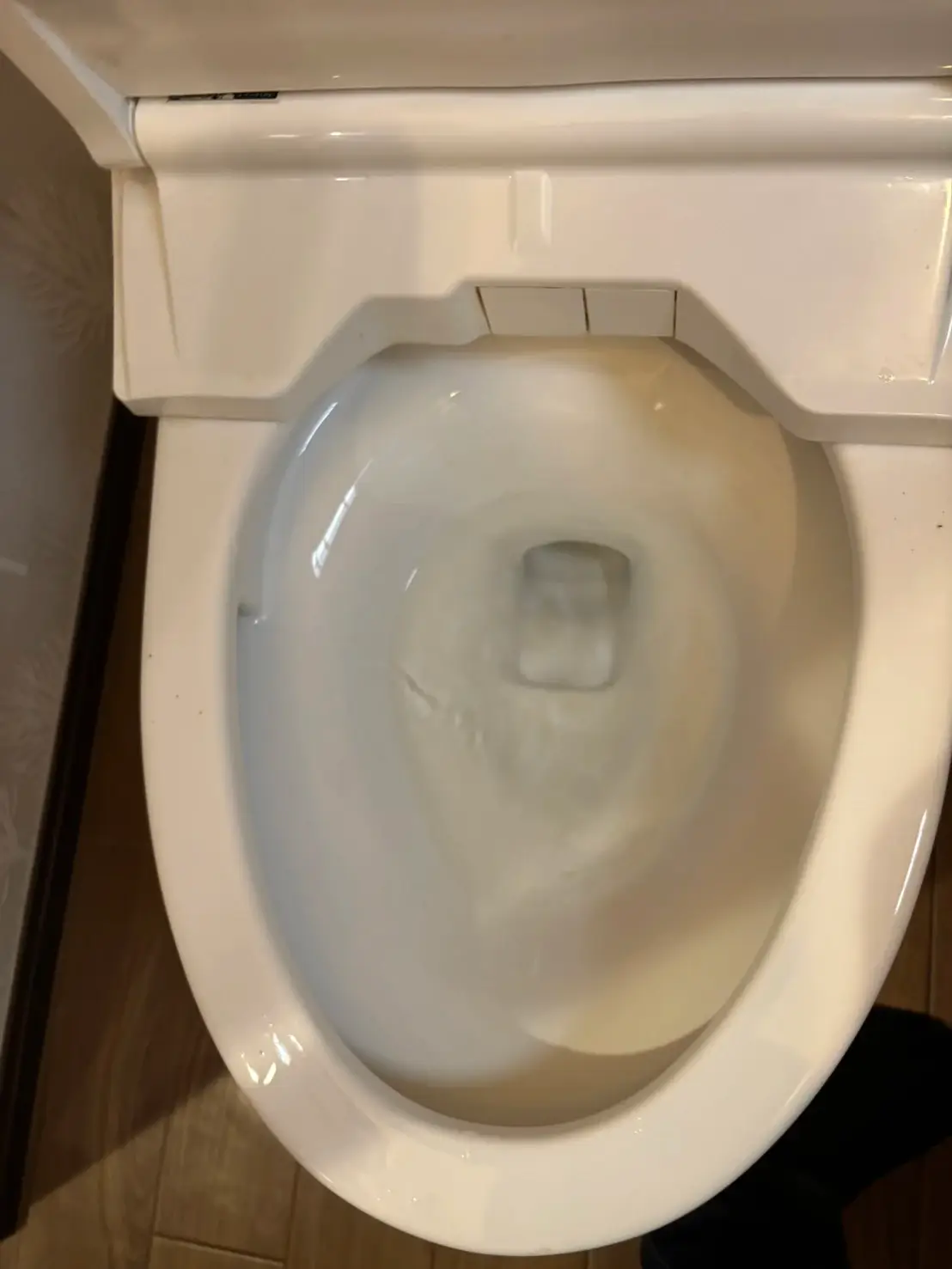 お伺いした際、便器内の排水が滞留しており、トイレットペーパーの固着が原因で詰まりを起こしていました。