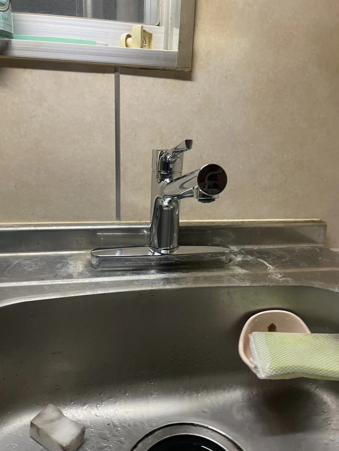 既存の水栓を丁寧に取り外し、給水管接続部の確認と清掃を行ったうえで新しい蛇口を設置しております。