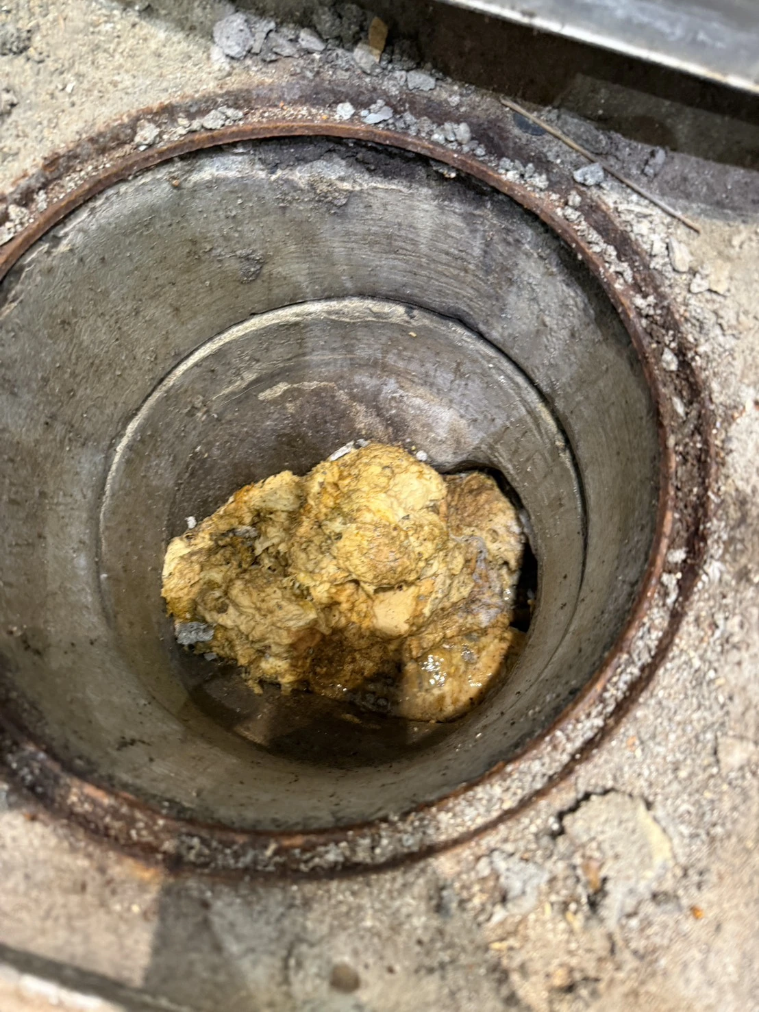 現地で確認したところ、トイレ内部の詰まりに加えて屋外の排水桝内に汚物や異物が堆積しており、水の流れが大きく妨げられている状態でした。