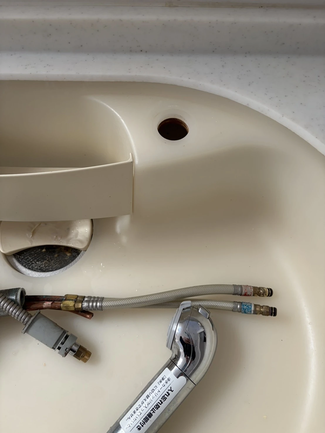 既存水栓を撤去後、給水・給湯配管の状態を点検し、新品水栓を確実に接続しております。