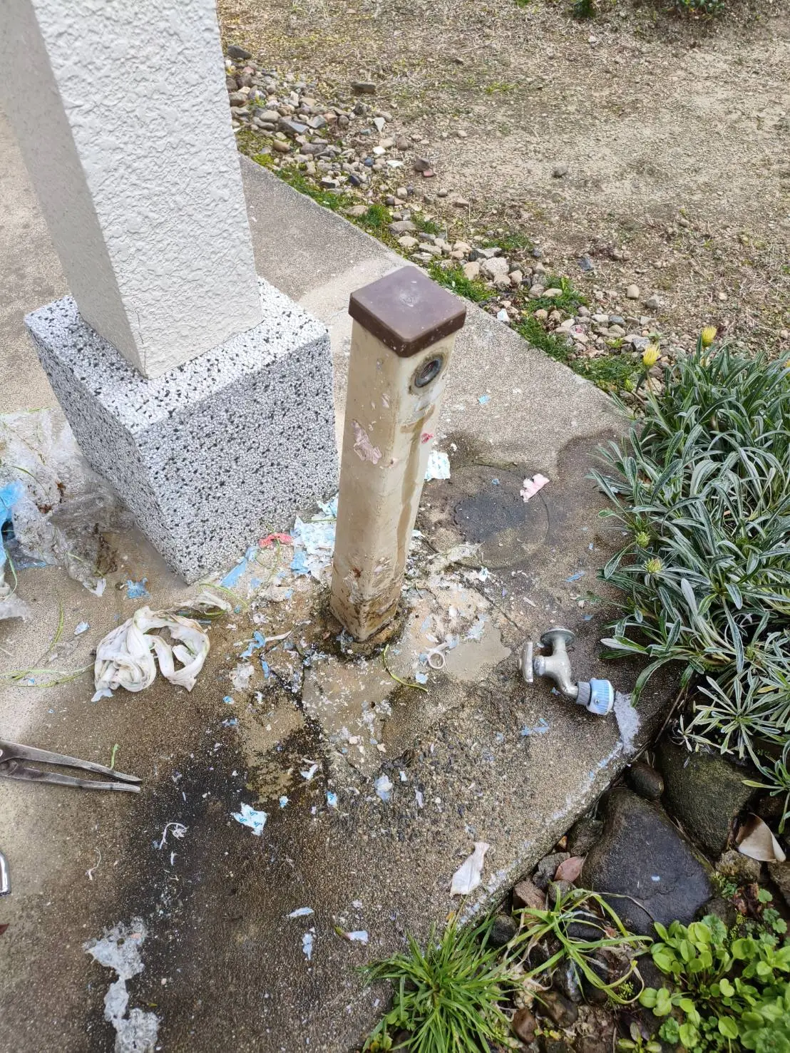 現場で点検してもらうと、蛇口内部の部品が劣化しているとのことで、散水栓用の蛇口を新しいものに交換してもらいました。
