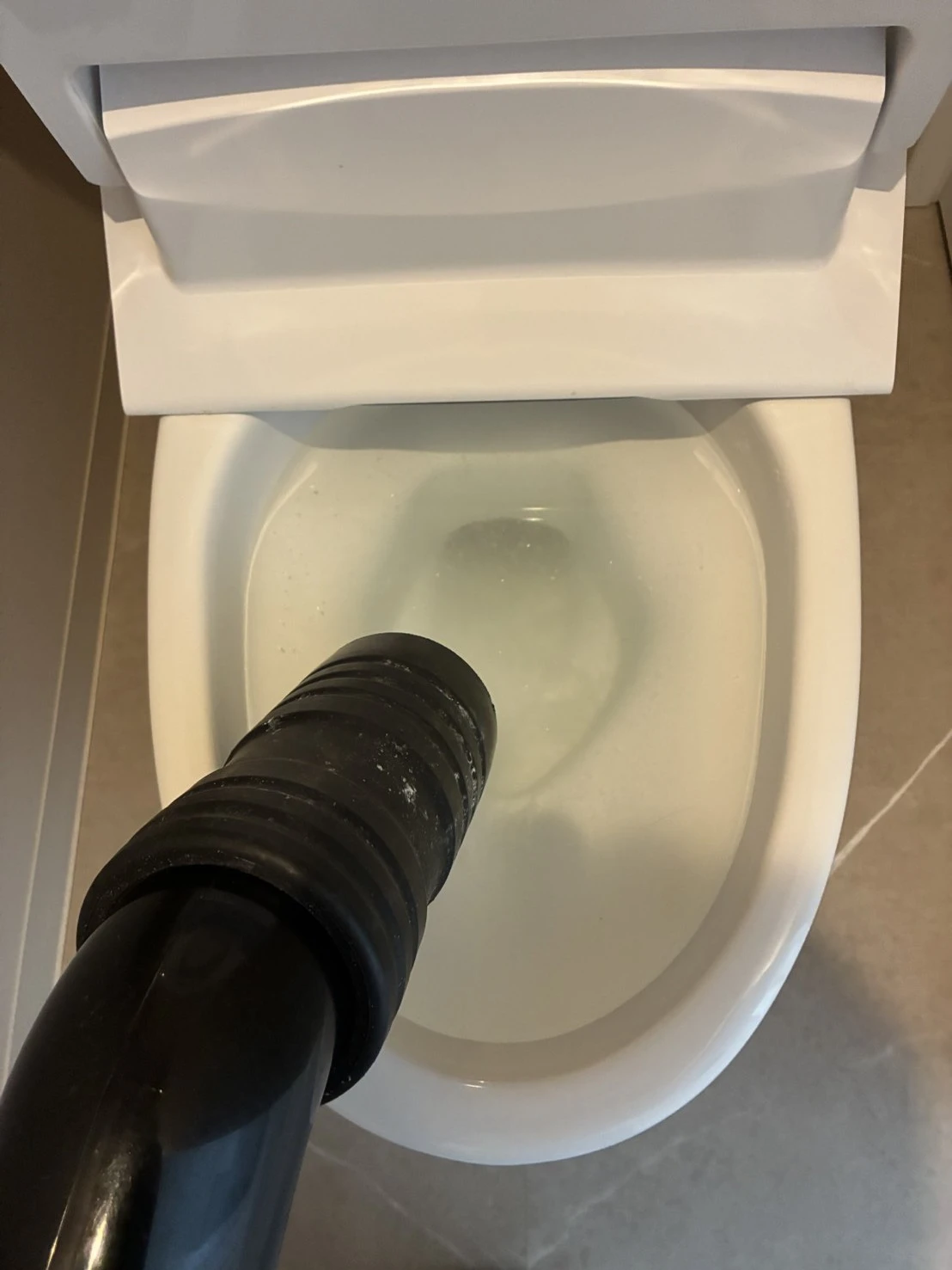 今回は市販薬剤では解消できない状態でしたので、ローポンプを使用し、排水経路に圧力をかけて詰まりを取り除く作業を行いました。
