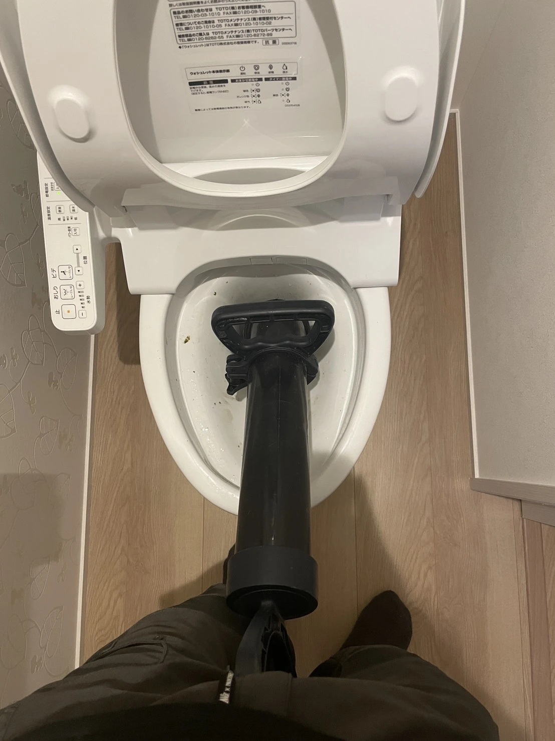 トイレを使おうとしたら水が流れず、ラバーカップで何とかしようとしましたが改善しませんでした。
