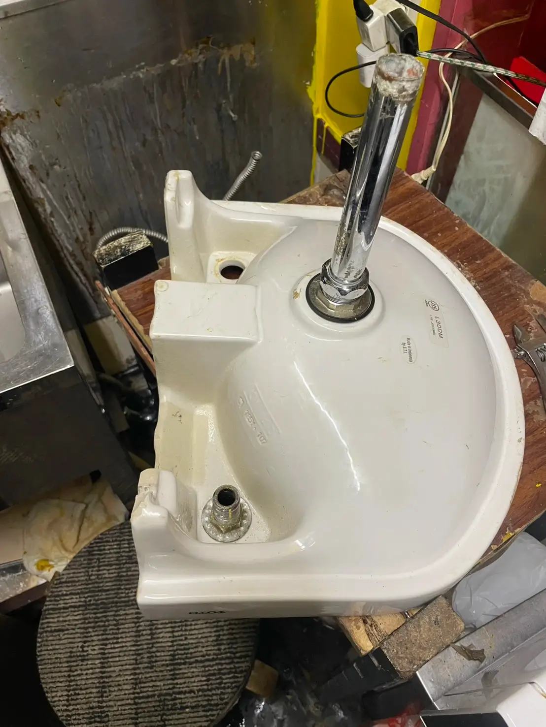 洗面台自体がだいぶ古くなっていたため、単なる詰まり除去ではなく、水栓ごと取り外して作業していただくことになりました。