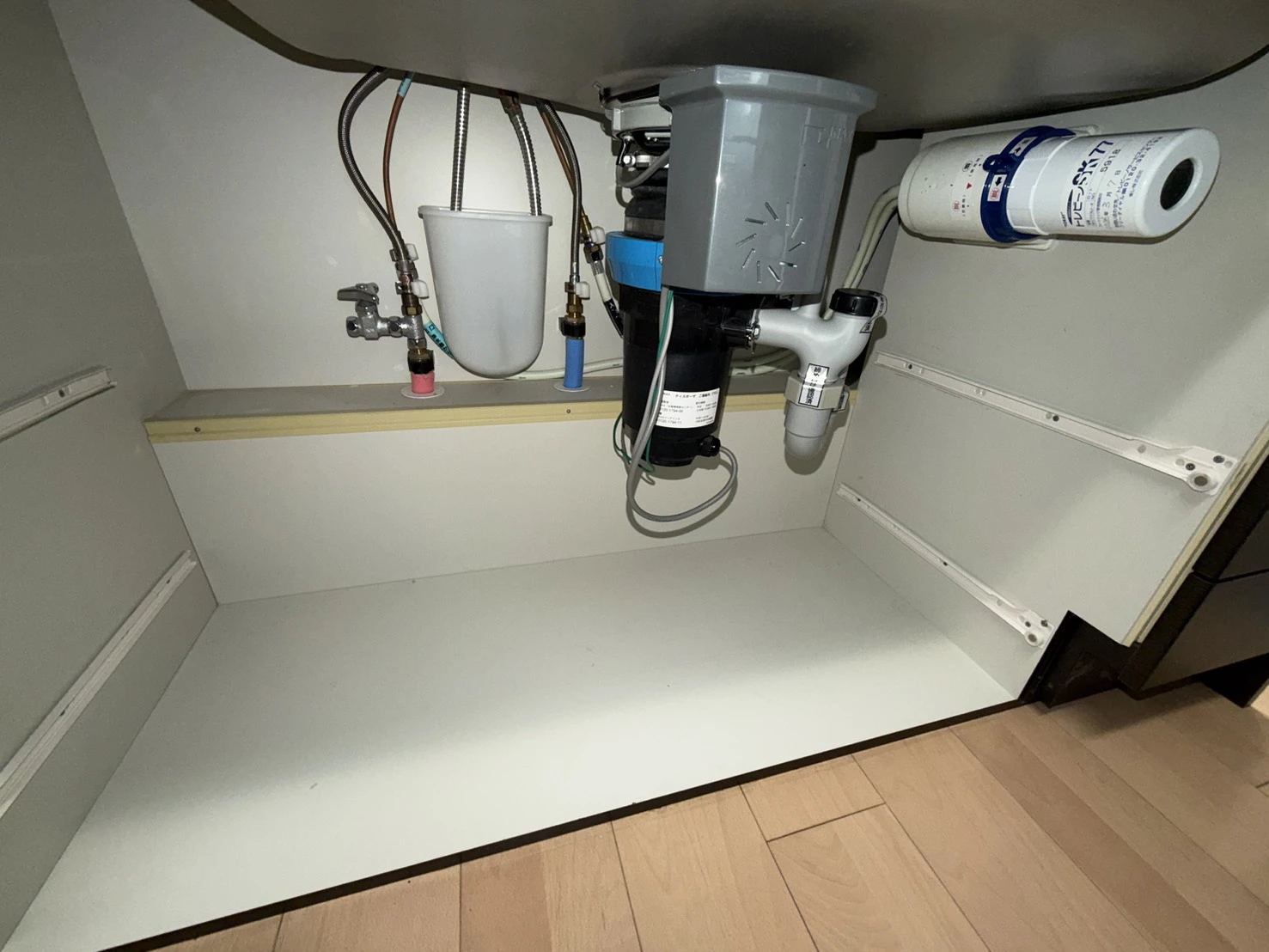 既存機器を取り外した後、新しいディスポーザーを再設置し、接続部の確認と通水テストまで行っております。