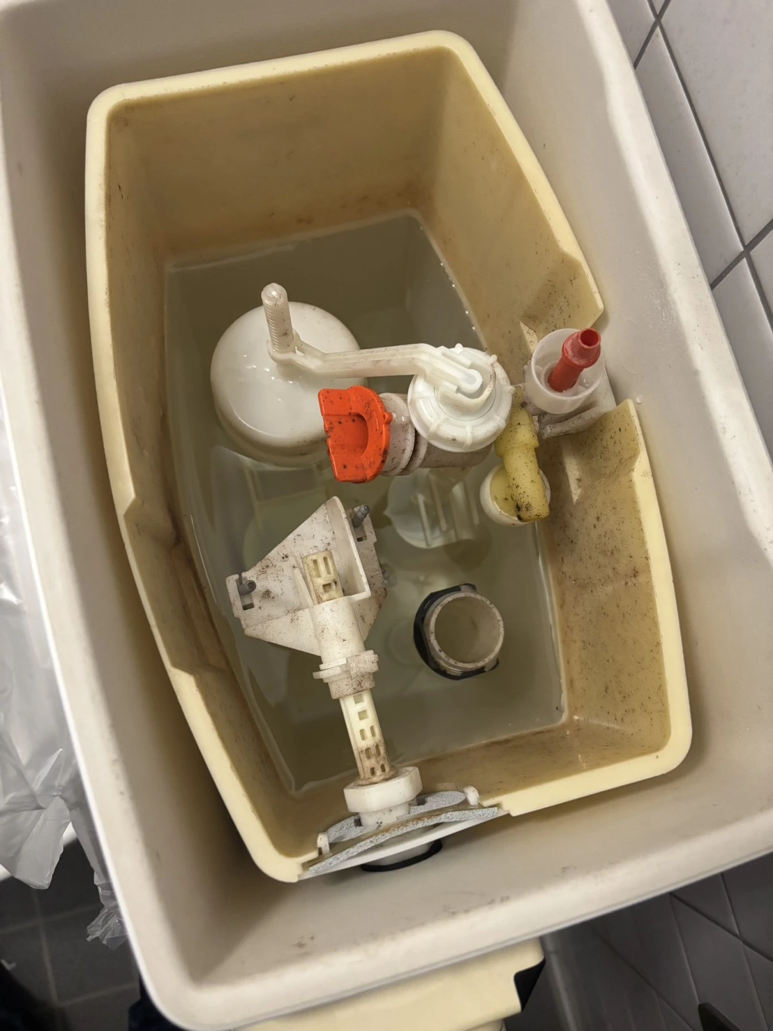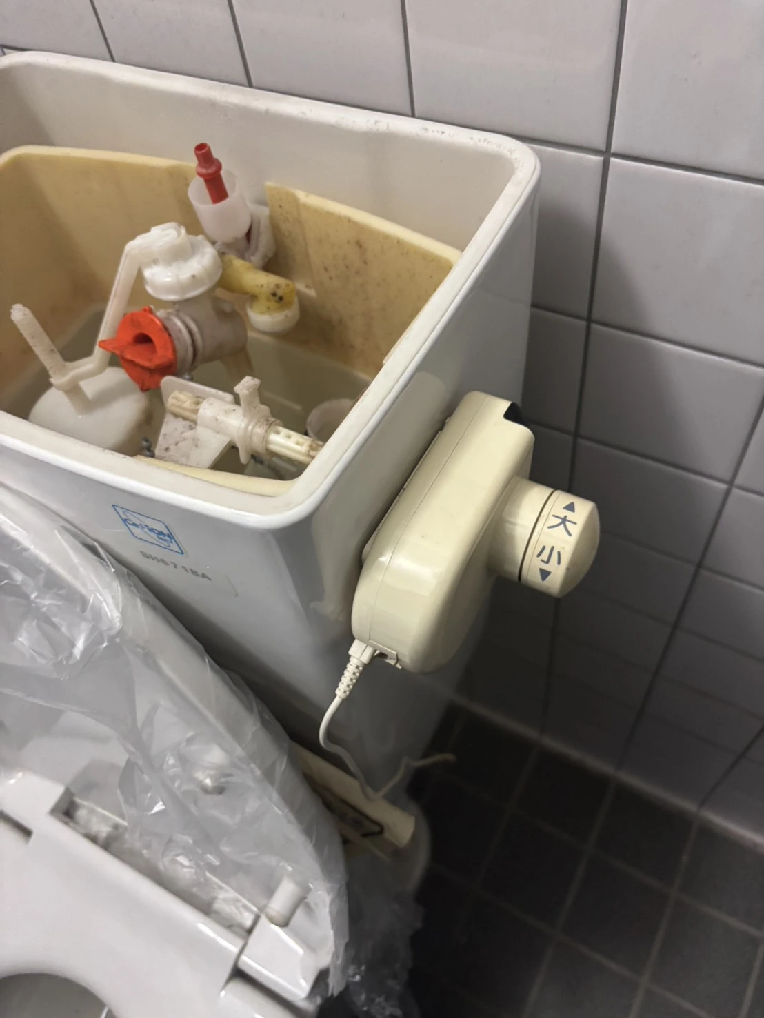 昼前の時間帯で、1階のトイレからずっと水が流れている音がして気になっていました。使うたびに音が続くので、生徒にも影響がありそうで少し焦る状況。