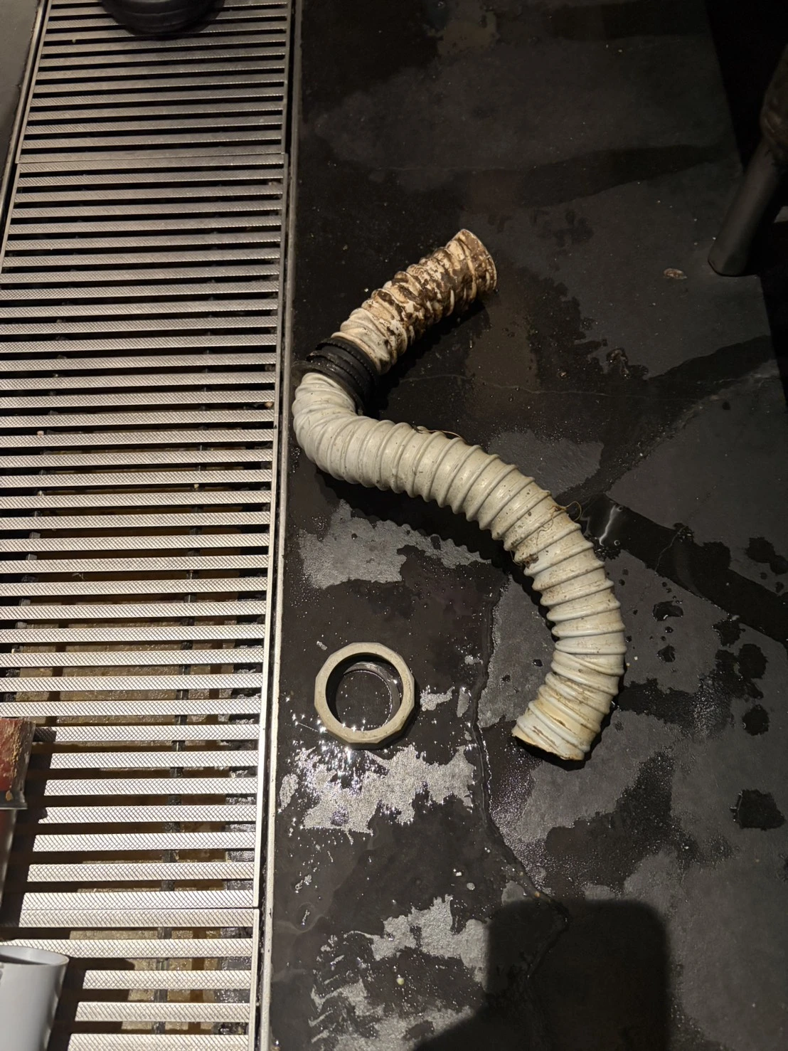 今回は既存ホースを取り外し、新しい排水ホースと塩ビ部材へ交換を行い、接続部の密閉性をしっかり確保しました。