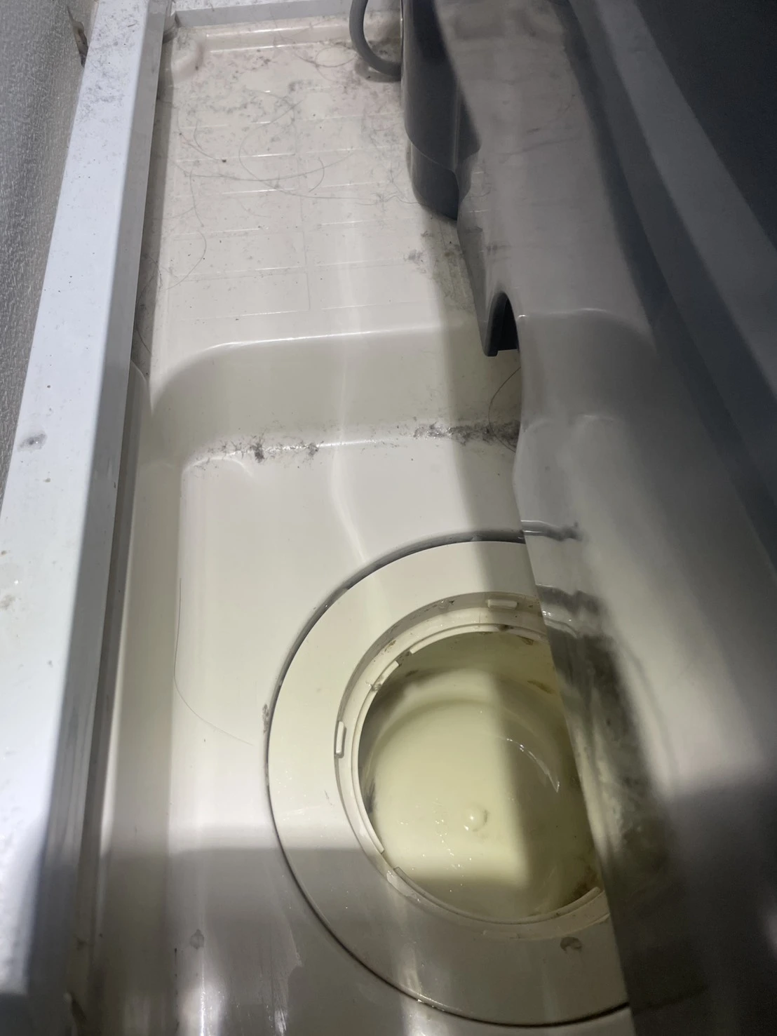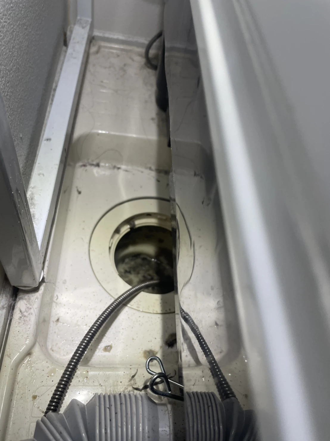 洗濯機の使用中に排水口から水が漏れているのに気づき、驚きました。