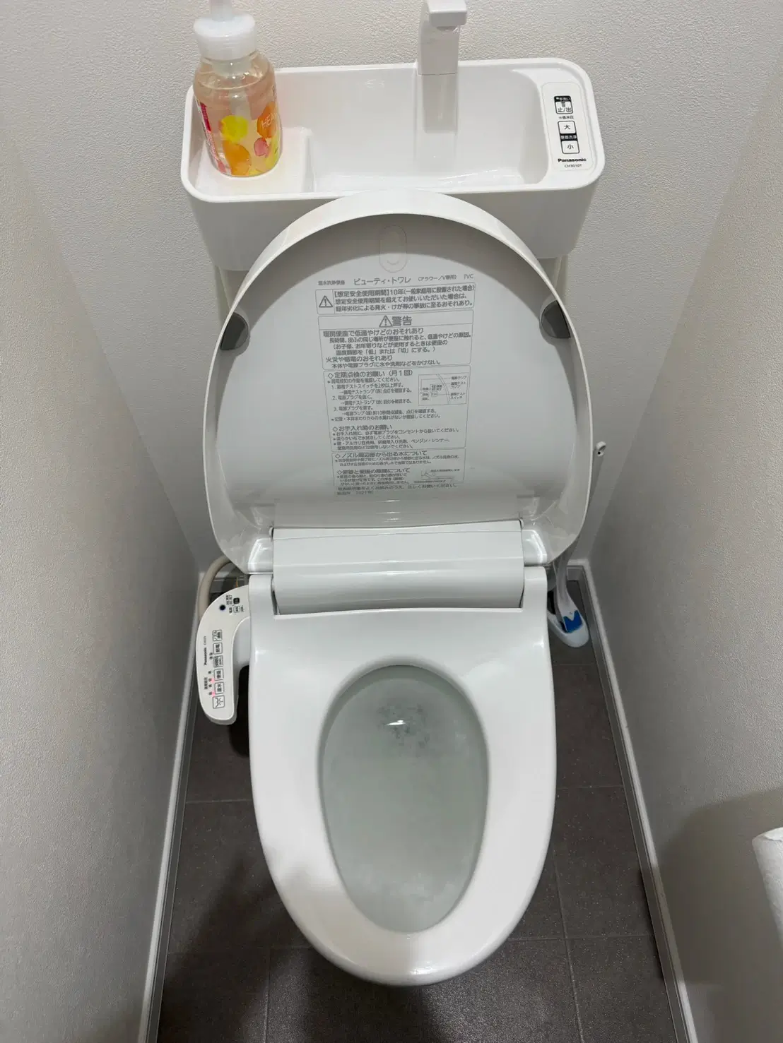 作業時は床や便器周辺への水はねを防ぐため養生を行い、周囲を汚さないよう注意しながら進めました。