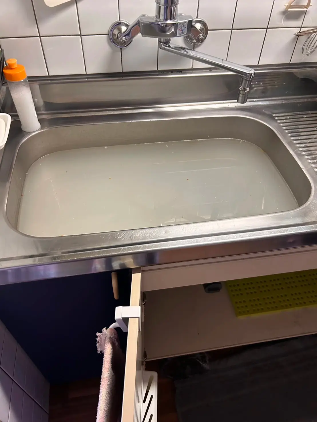 朝、台所を使おうとしたら水がまったく流れず焦りました。シンクに水が溜まっていくのを見て、これは自分では無理だと感じて依頼。