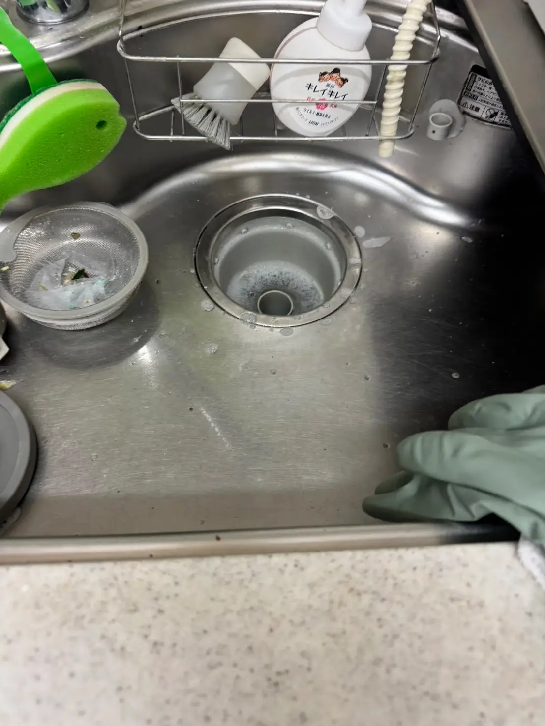 作業の途中で排水口の周りを軽く拭きながら進めていて、細かいところも気にしてくれている印象。