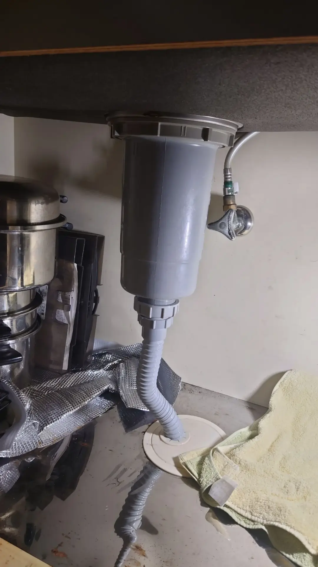 現場確認ではシンク下の排水トラップに劣化が見られ、接続部からの漏水が発生している状態でした。