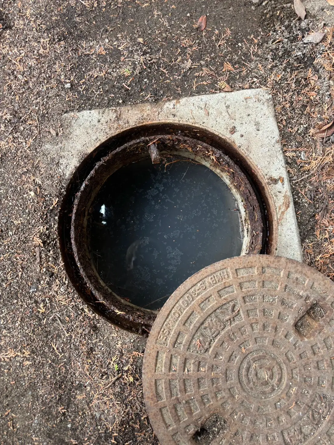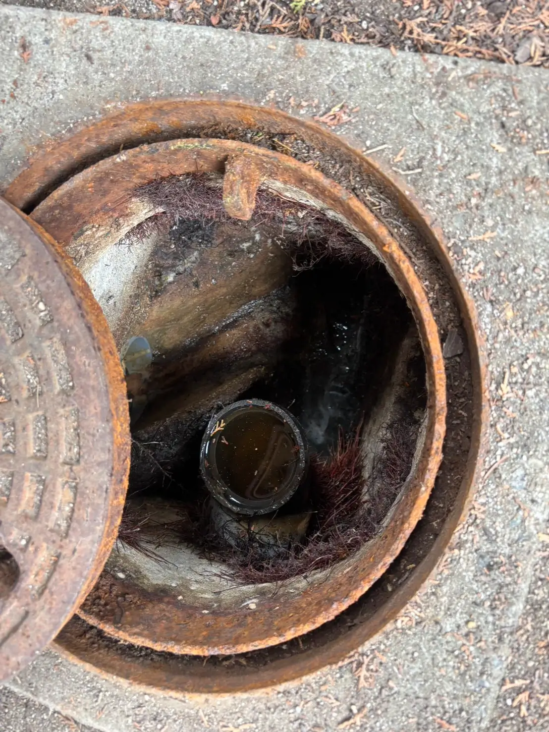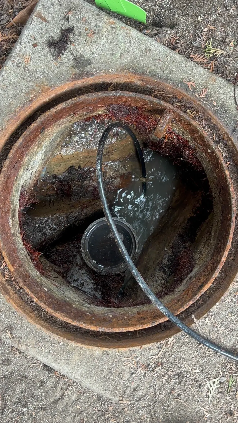 現地で確認したところ、排水の流れが悪く屋外側の配管に詰まりが発生している状態でした。