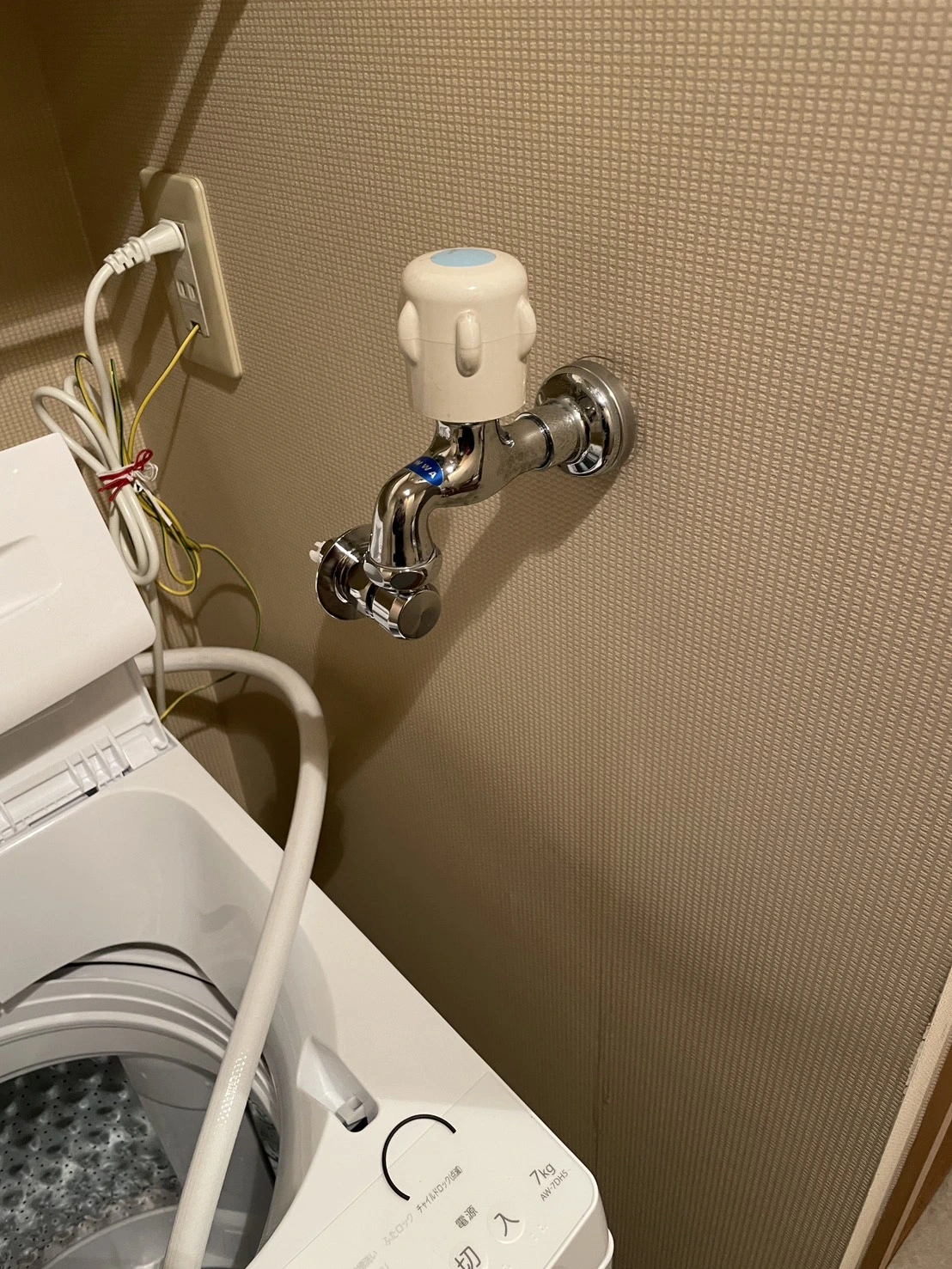 洗濯機の蛇口から以前から少しずつ水が漏れていて、気づいた時にはタオルで受けるような状態になっていました。
