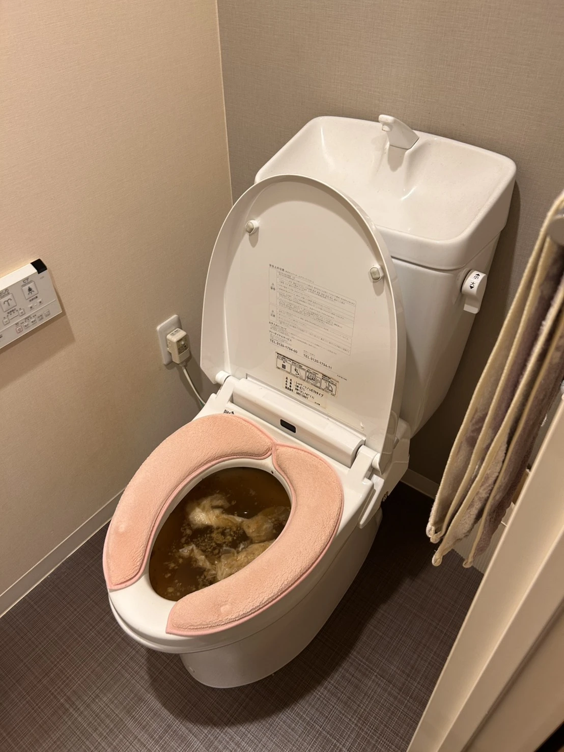 夜にトイレを使ったあと、水が引かずそのまま溜まってしまい焦りました。何度か流しても状況は変わらず、むしろ水位が上がってきて不安な気持ちに。