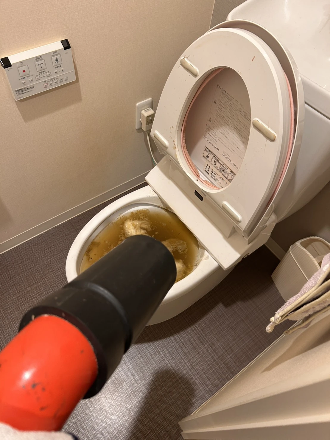 今回のトイレつまりは、トイレットペーパーの一時的な詰まりが原因で、水の流れが滞っている状態でした。