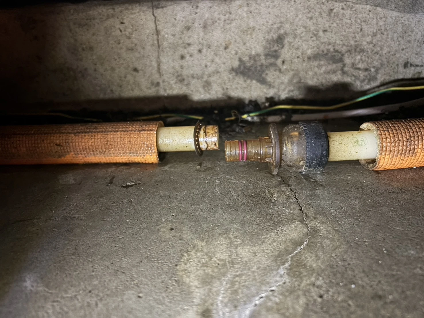 給湯管のつなぎ目から水が漏れているのを見つけてしまい、かなり焦ってすぐに連絡しました。