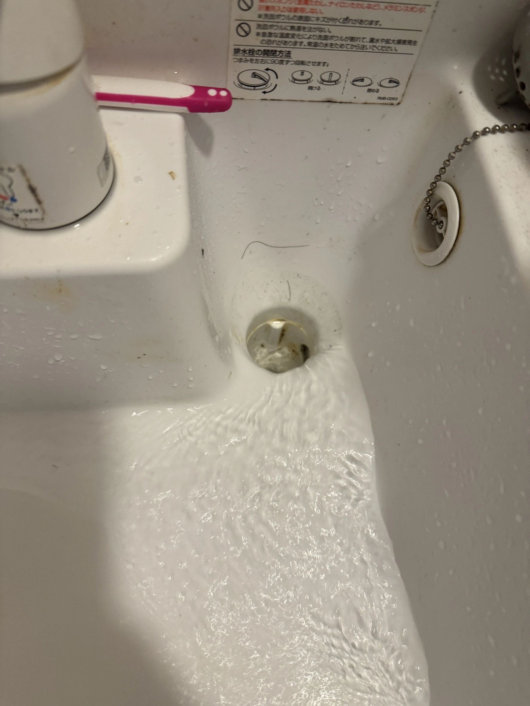現地で確認したところ、排水管内部に汚れが蓄積している状態でした。