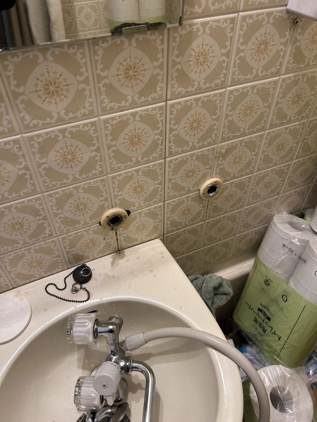 既存の水栓を取り外し、配管接続部の状態も確認しました。
