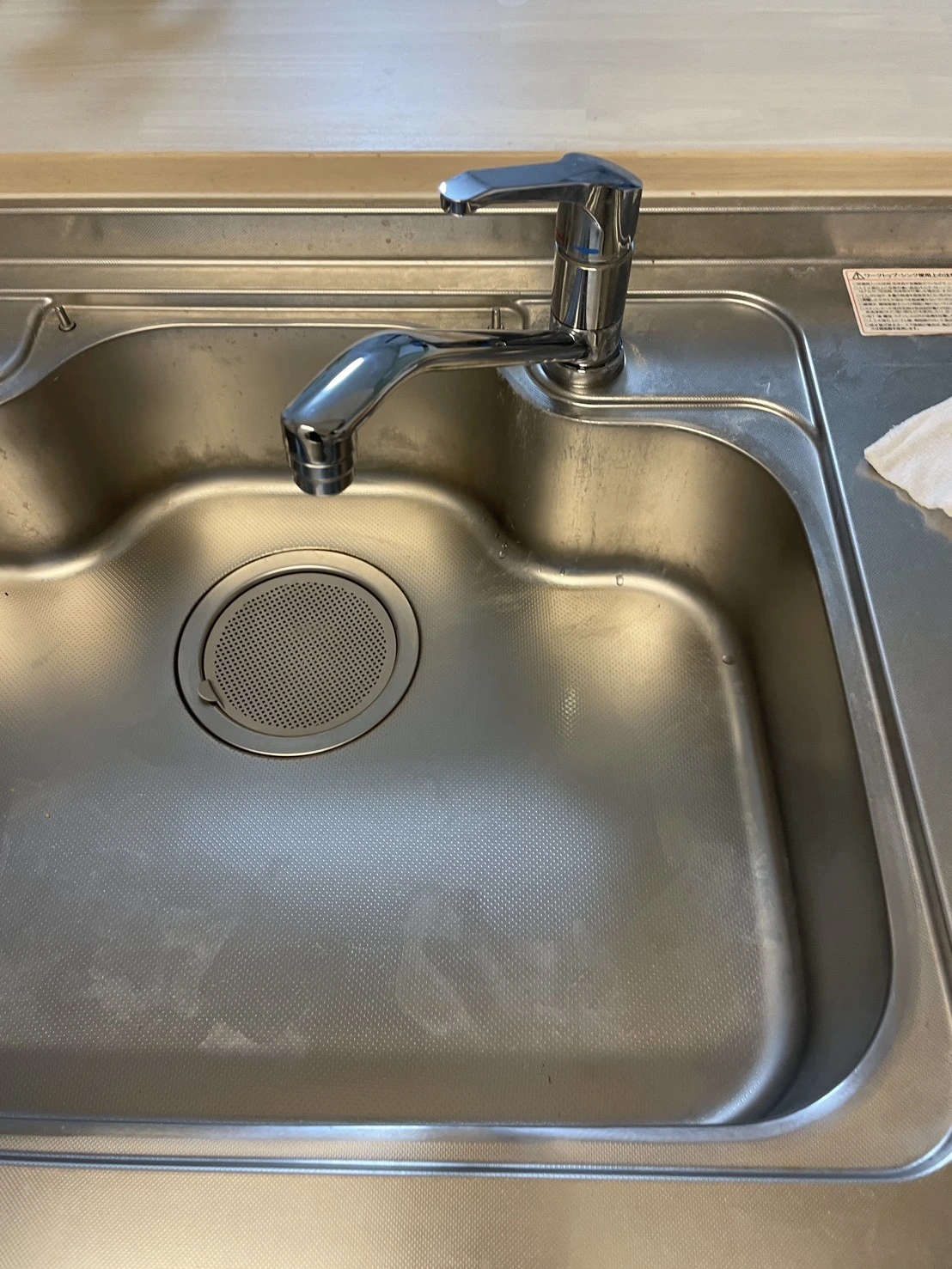 作業中はシンク周りにタオルを敷き、水滴が広がらないよう配慮しながら進めています。