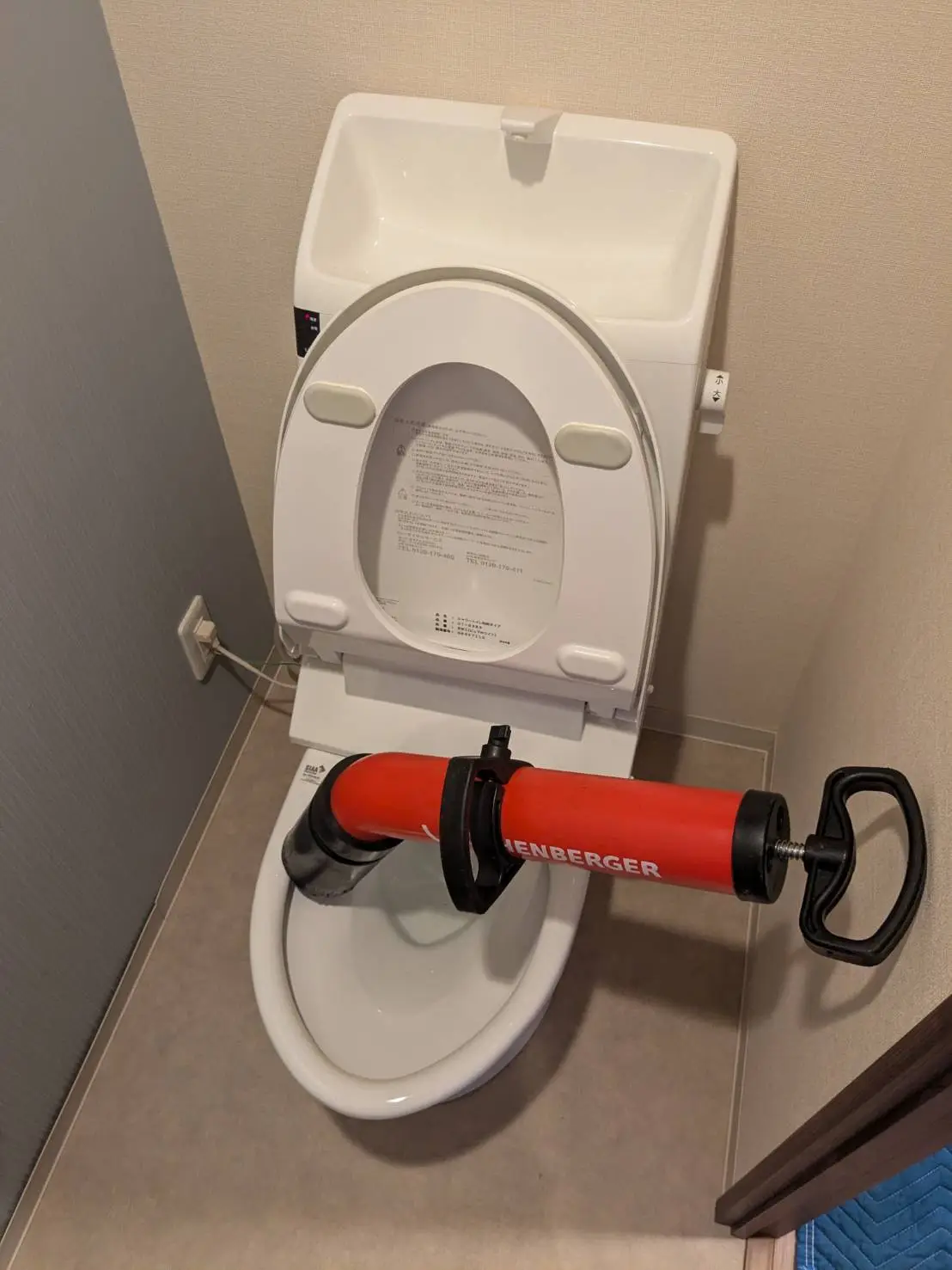 今回はトイレのつまりが発生し、排水の流れが完全に滞っている状態でした。