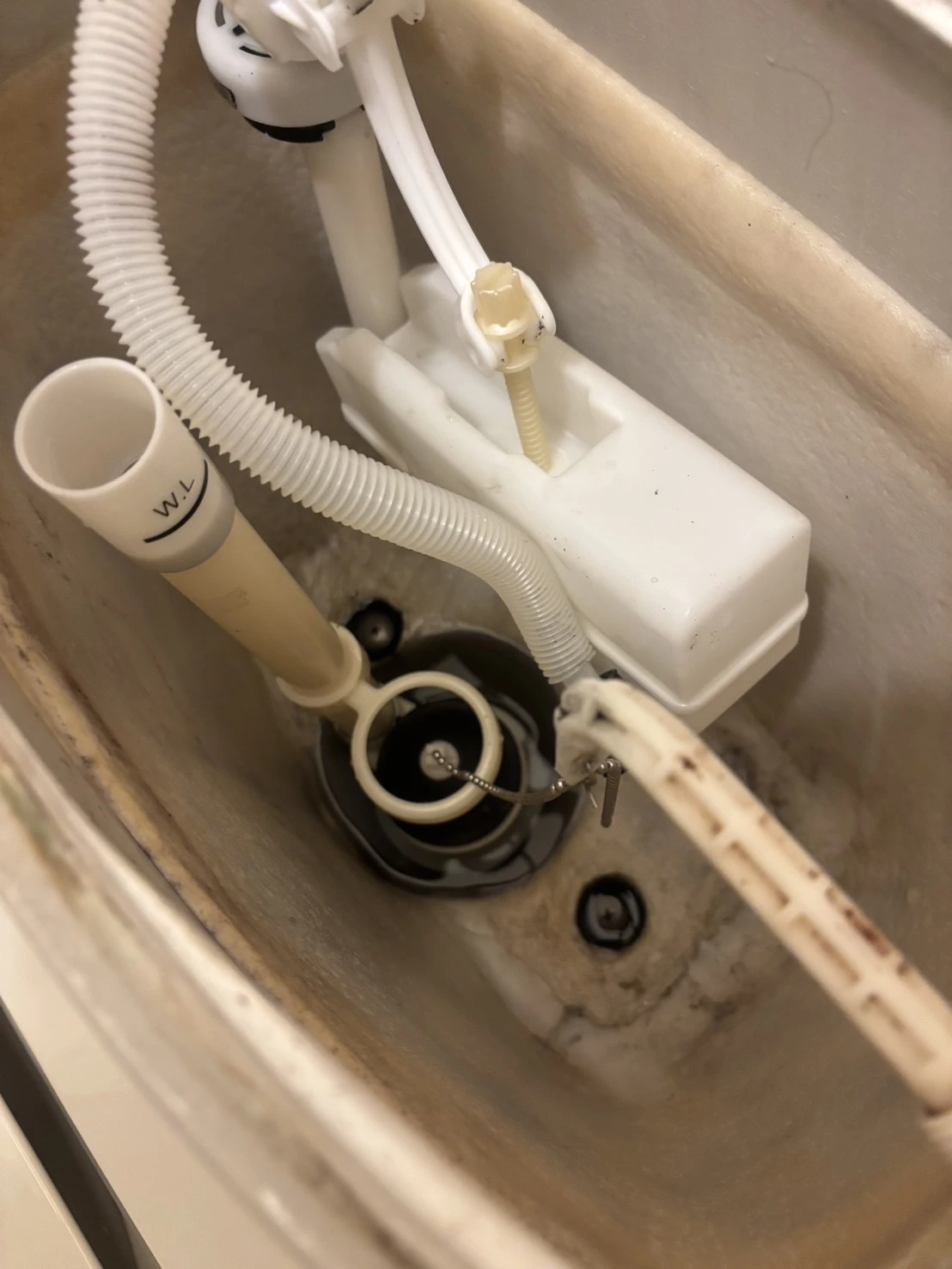 特にフロートや給水まわりの動きが鈍く、水が止まりきらない状態になっていたようです。