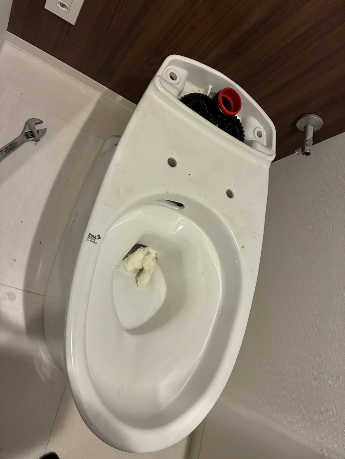 ついに水を流すと逆流するようになり、床にあふれそうになるほどの状態になってしまいました。