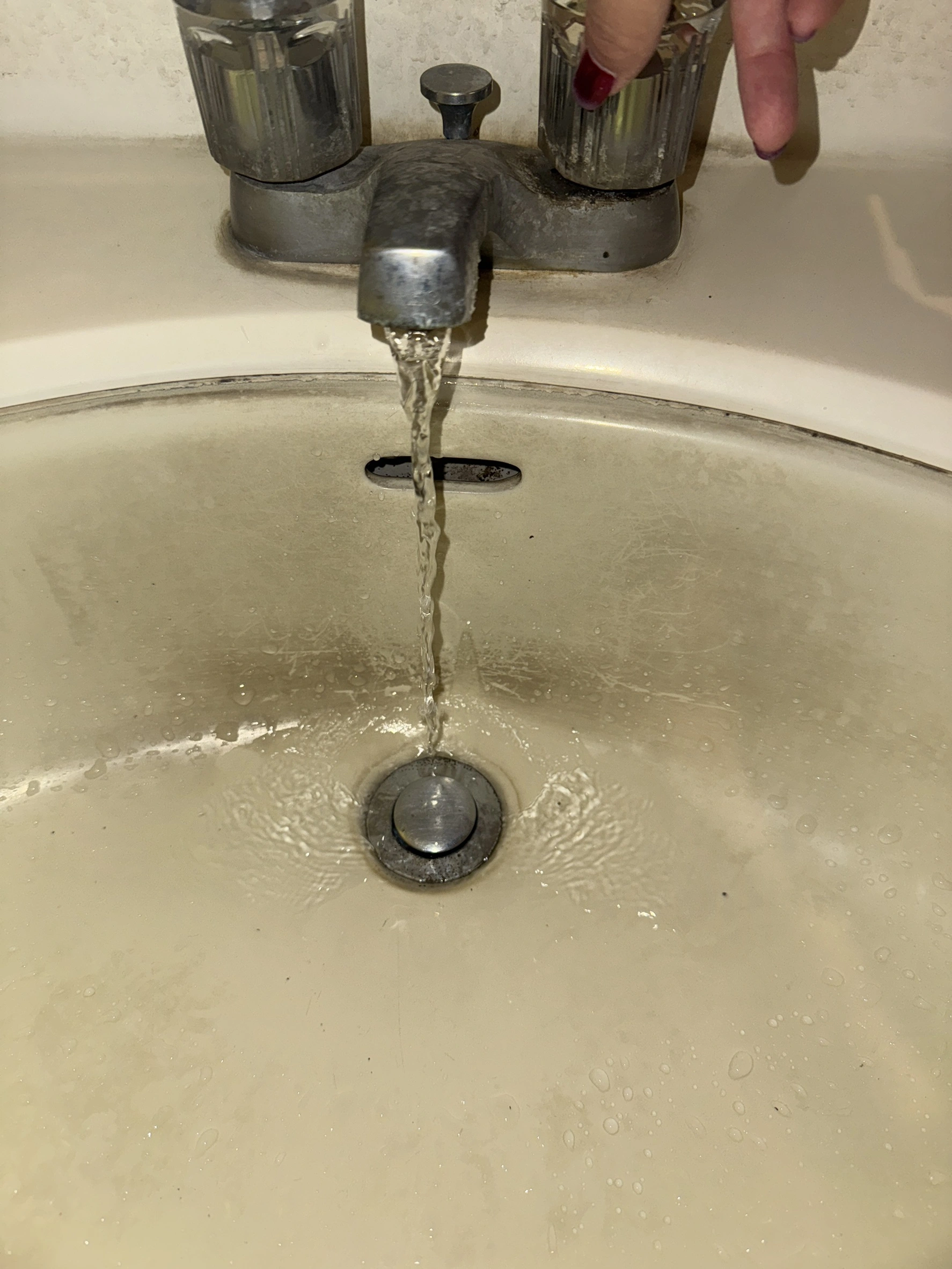 朝の身支度中に水の流れが悪いことに気づきました。顔を洗ったあと水が溜まり気味で、だんだん不安に。