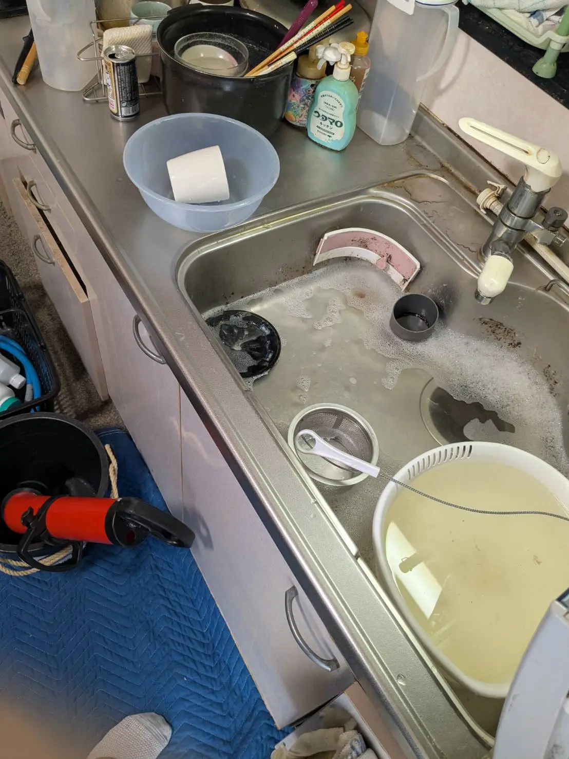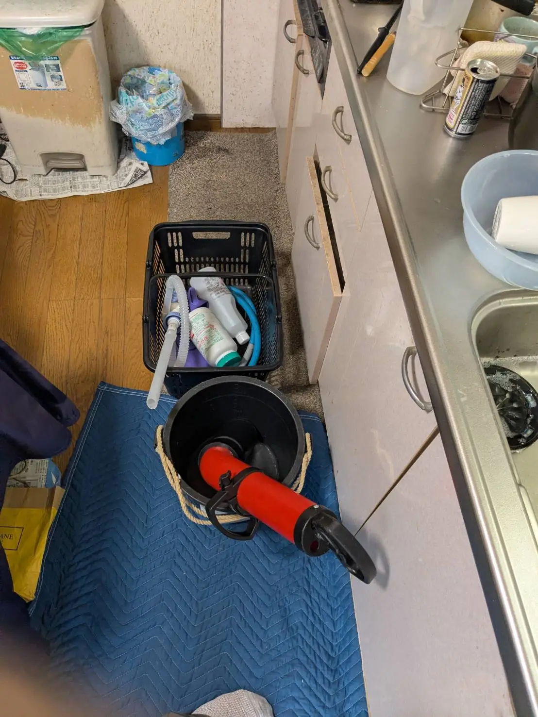キッチンシンクの水が急に流れにくくなり、使うたびに水がたまってしまって困っていました。